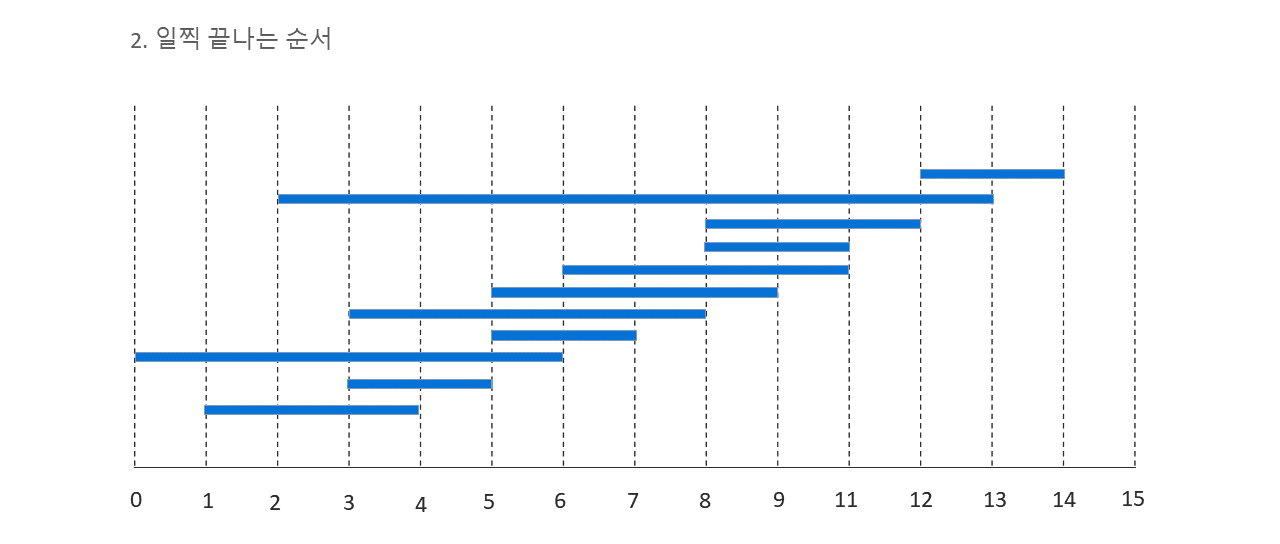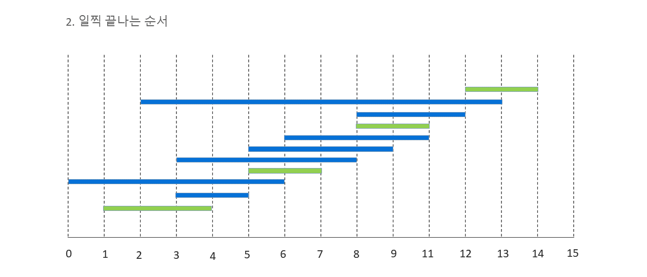 이번엔 일찍 끝나는 순서대로 정렬을 해보자.