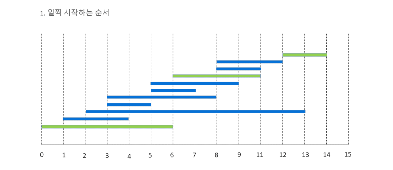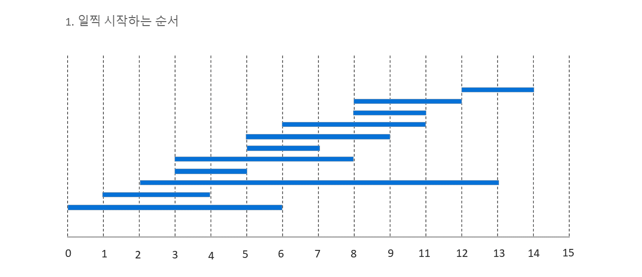 먼저 일찍 시작하는 순서대로 정렬을 해보자.