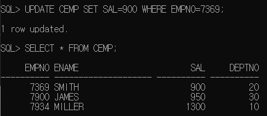 직원번호가 7369인 직원의 월급을 900으로 바꿔보자.