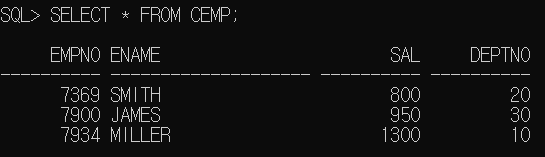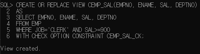 이번엔 월급이 900이상인 직원의 정보를 저장한 CEMP_SAL VIEW를 만들어보자.