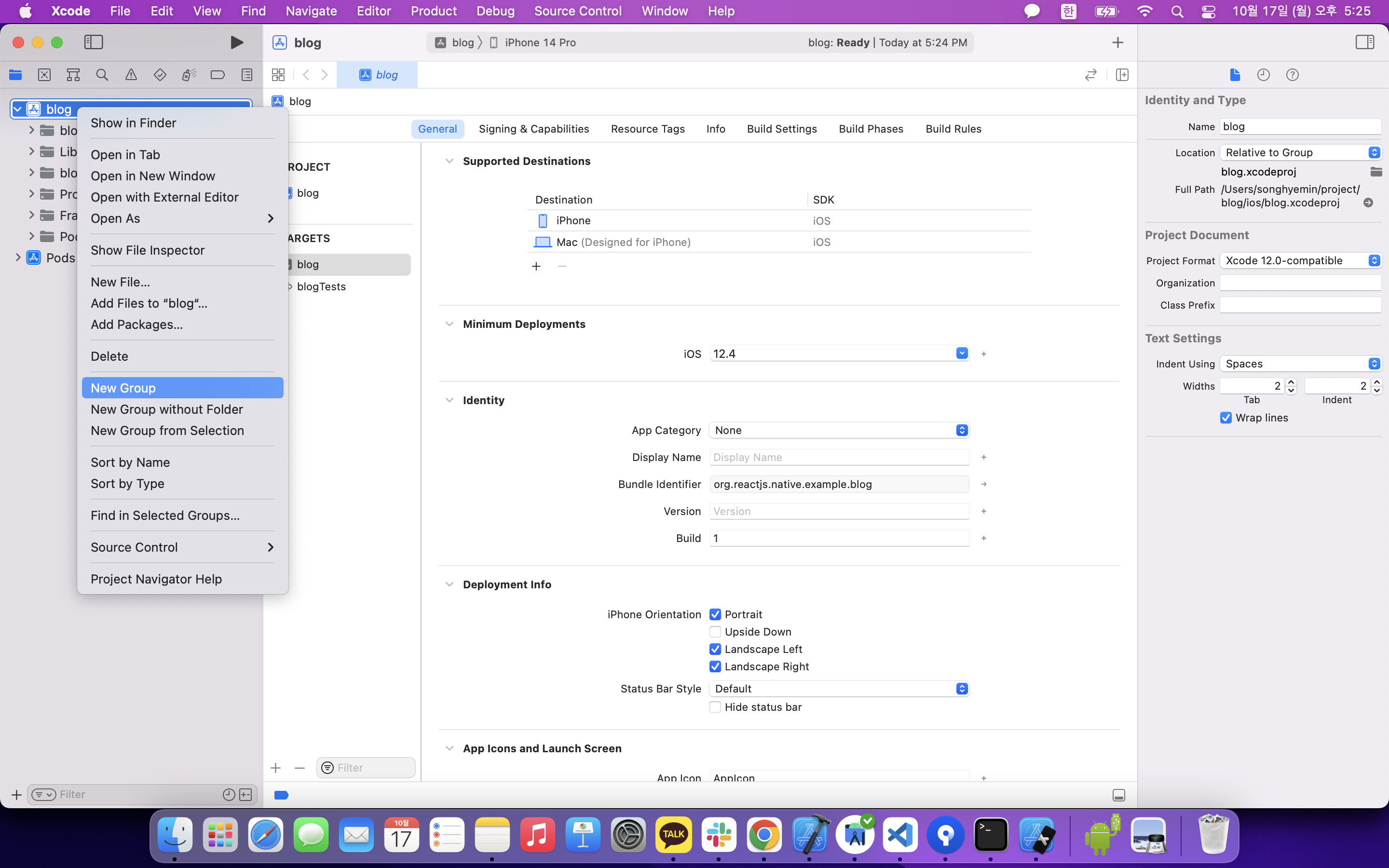 1. xcode로 프로젝트의 ios > projectName.xcworkspace 열고, projectName폴더 아래에 New Group으로 Fonts 그룹 추가