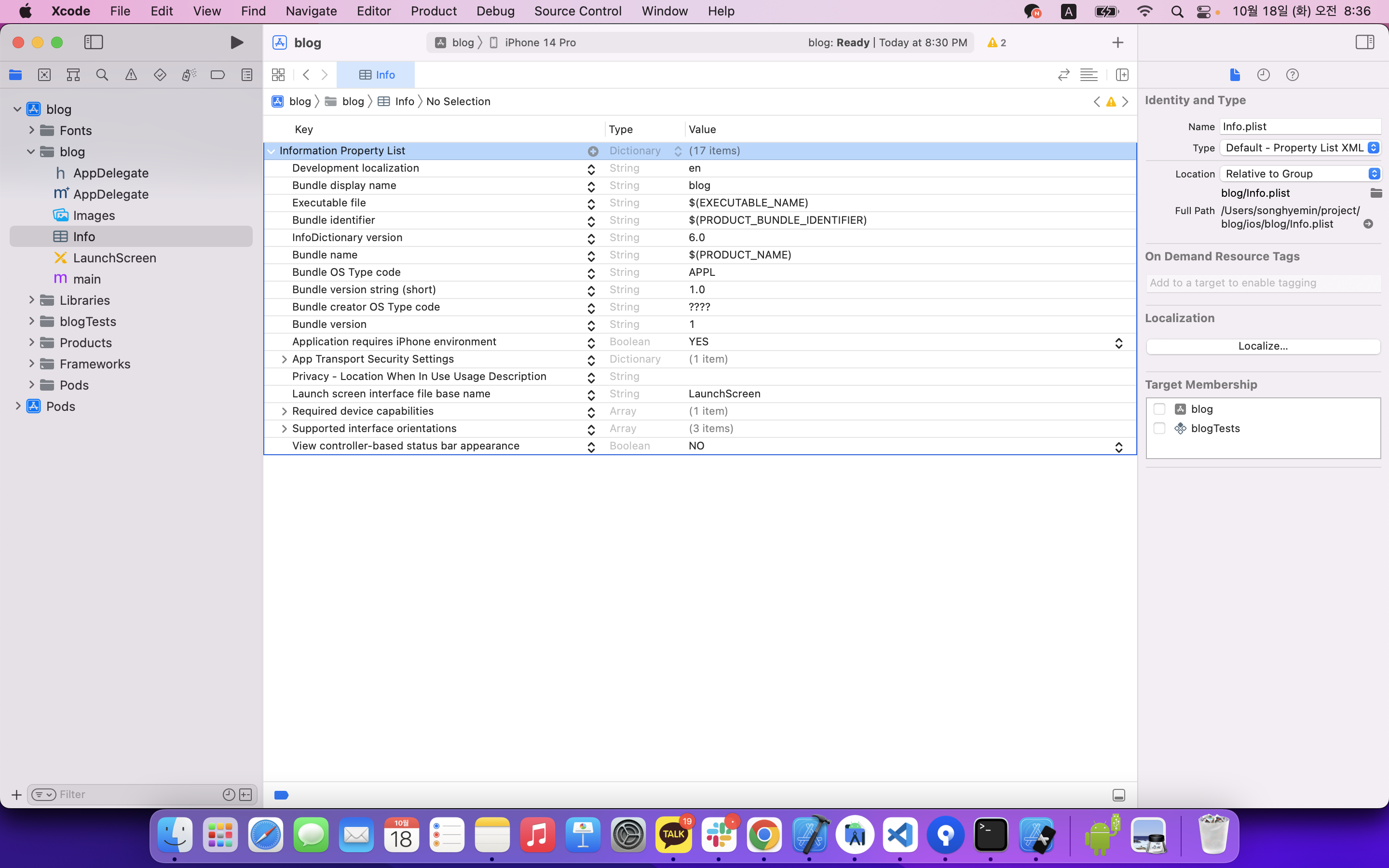 4. xcode clean(Command + Shift + K) 및 빌드(Command + B)